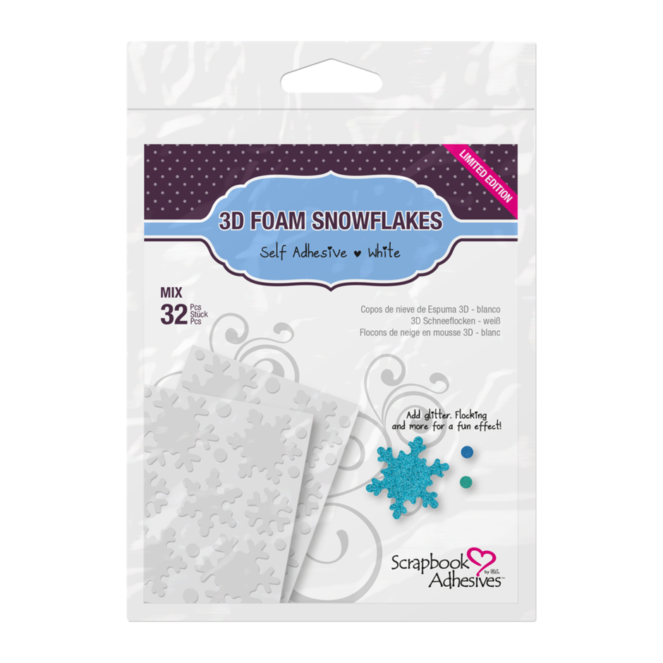 Create custom embellishments with the 3D Foam Holiday Embellishment Kit. Winter themed kit, includes 3D Foam pre-cut shapes of Trees, Stars, Snowflakes, and Christmas, with 5 sheets of Craft Foil. These 3D Foam Shapes are high-density foam with adhesive on both sides. Adhere to project and remove the top liner to embellish.